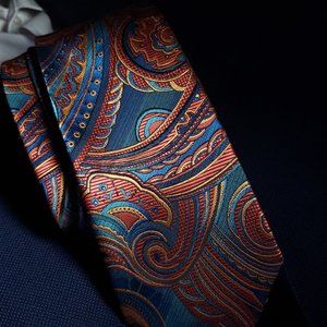 Men's Silk Paisley Tie - Blue and Red — Free Shipping