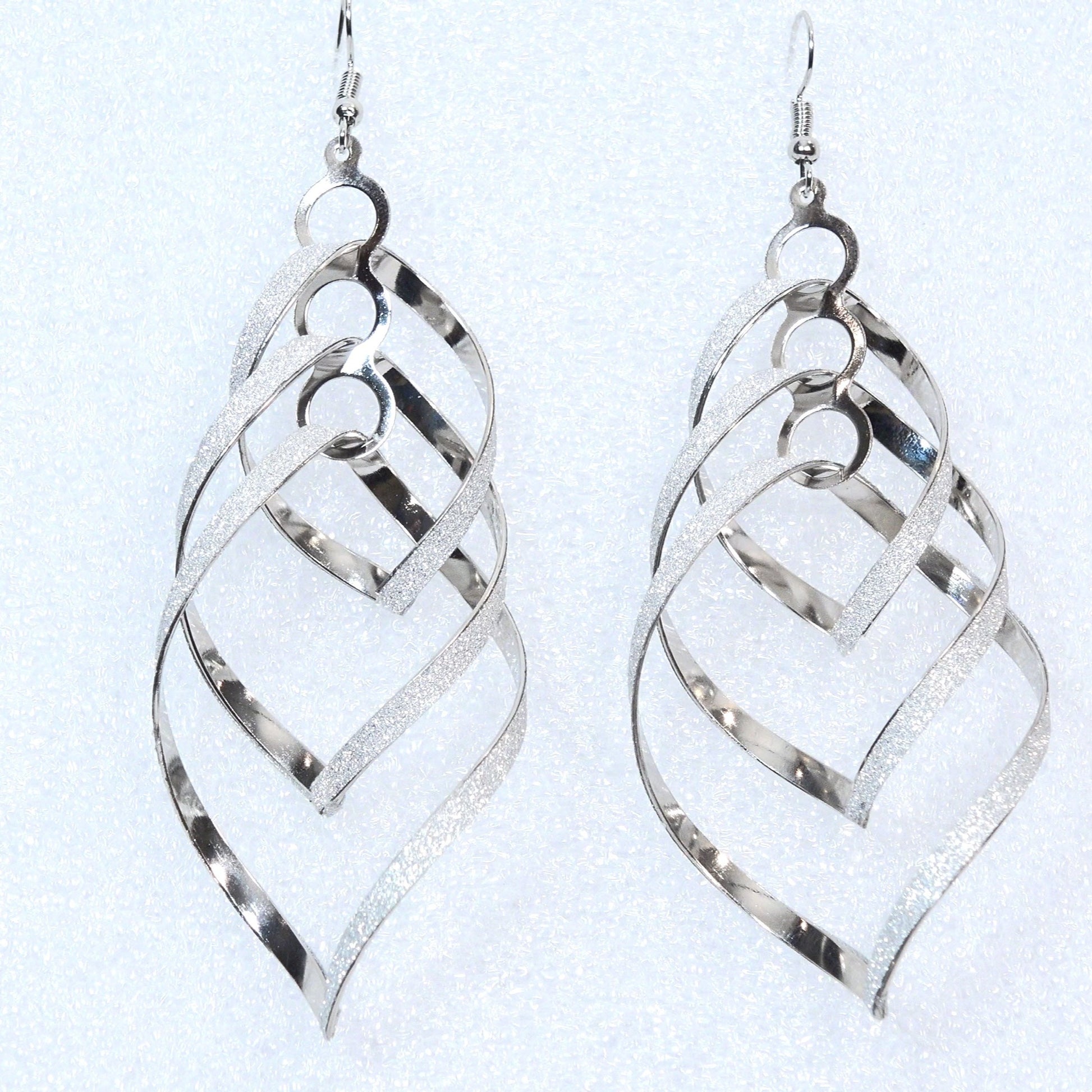 OL spiral silver toned uniquely shaped earrings — Free Shipping